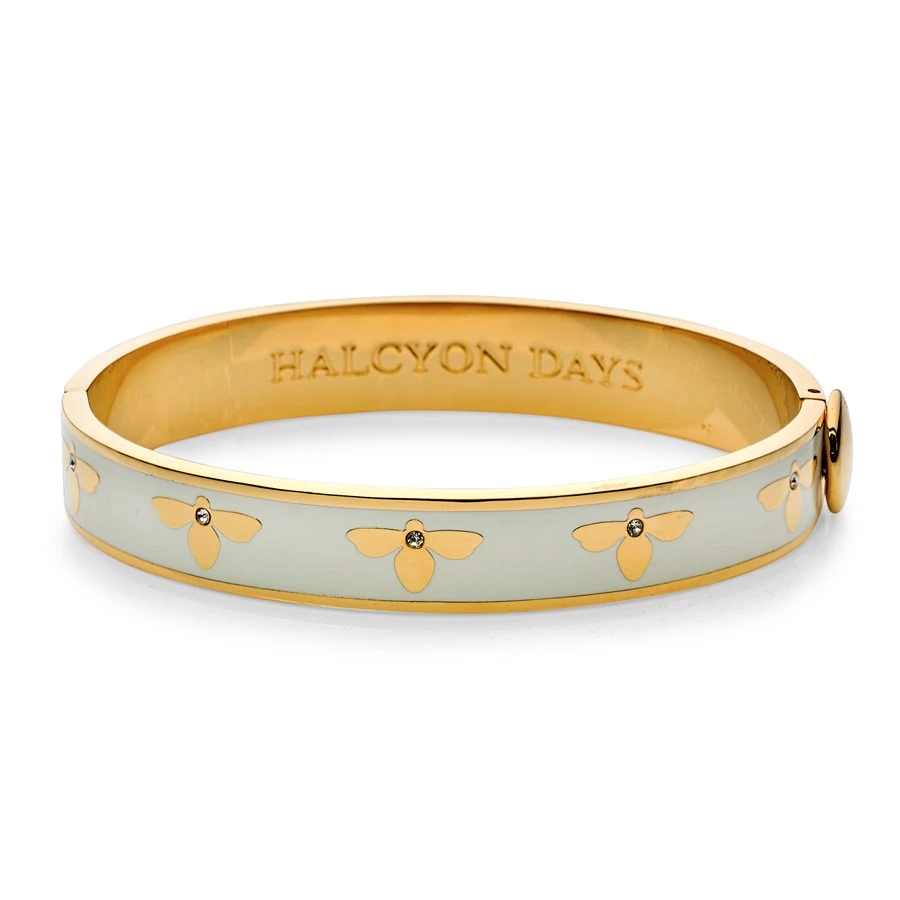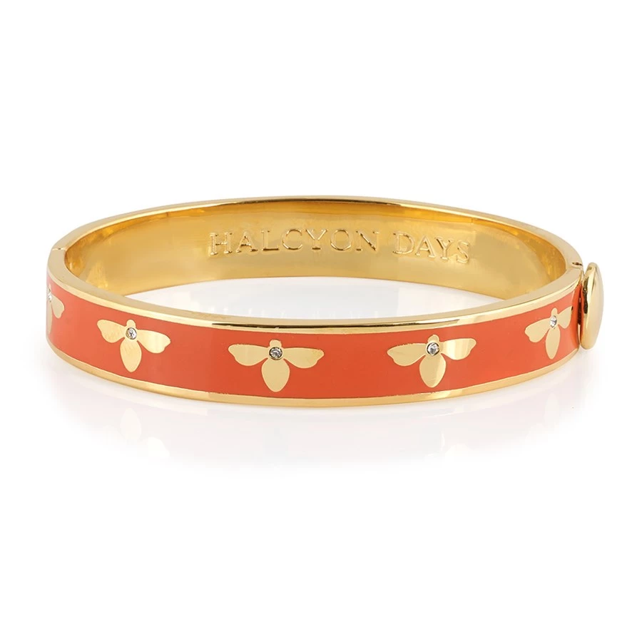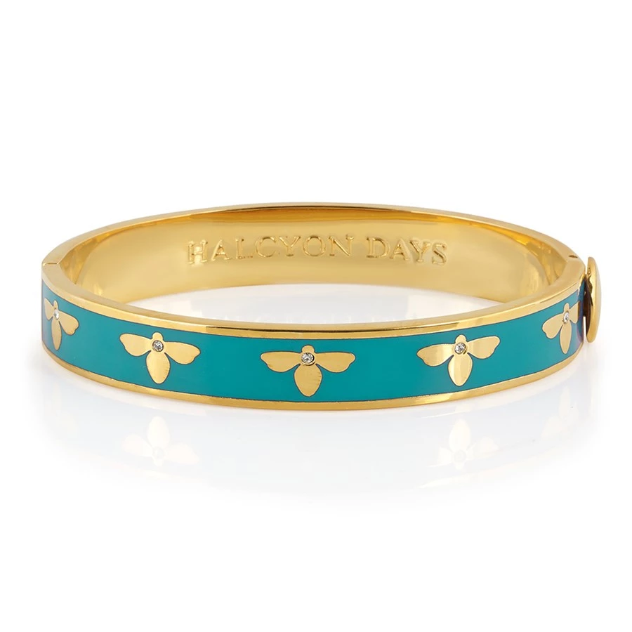 | Style | Bee Hinged Bangle, Turquoise and Gold, Bee Hinged Bangle, Black and Gold, Bee Hinged Bangle, Orange and Gold, Bee Hinged Bangle, Cobalt and Gold, Bee Hinged Bangle, Cream and Gold, Bee Hinged Bangle, Red and Gold |