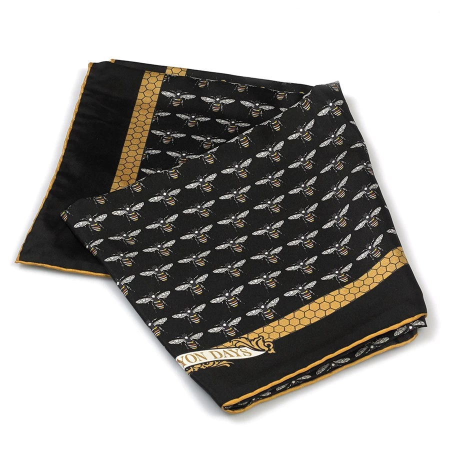 Embody classical elegance with the Bee Trellis 100% Silk Scarf from Halcyon Days. Designed in London and inspired by the love, wisdom and loyalty of the honey bee, this trellis design features delicate illustrations of these courageous creatures against a black background with opulent gold boarder for a sophisticated finish. Made in Italy with the highest quality silk, this versatile go-with-anything piece is an essential wardrobe staple or luxurious gift for someone special.