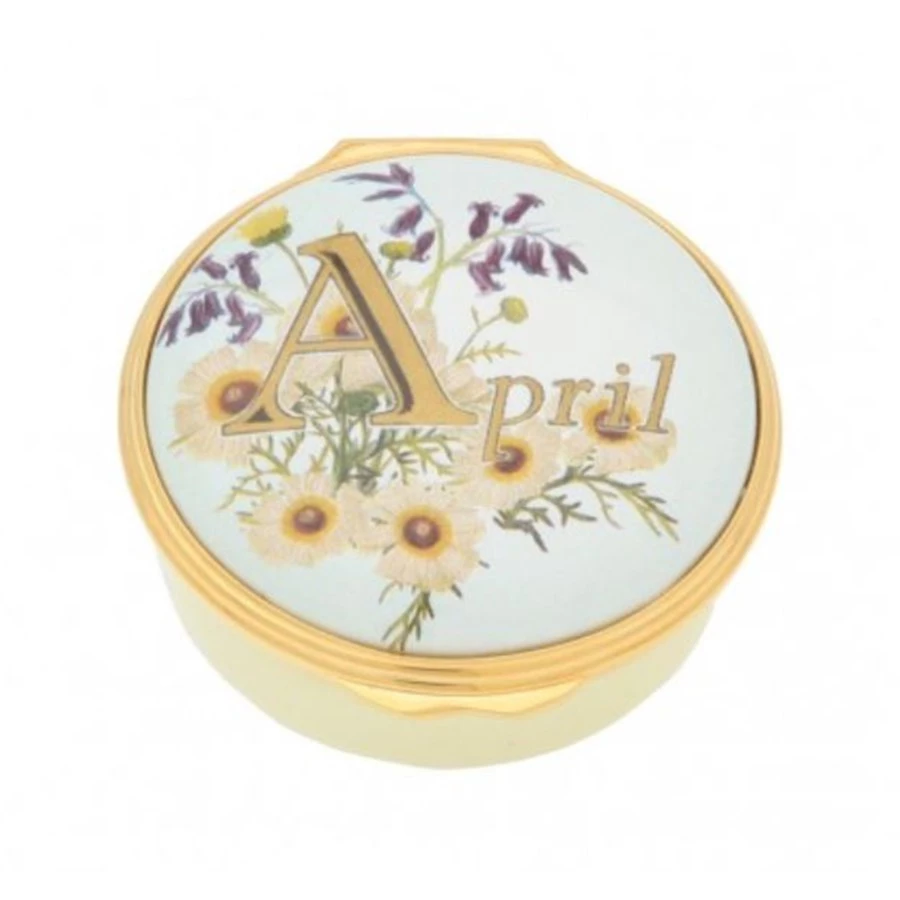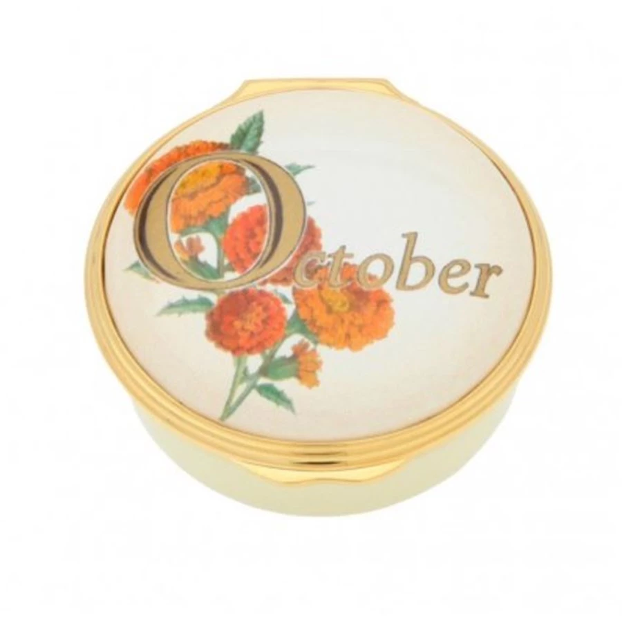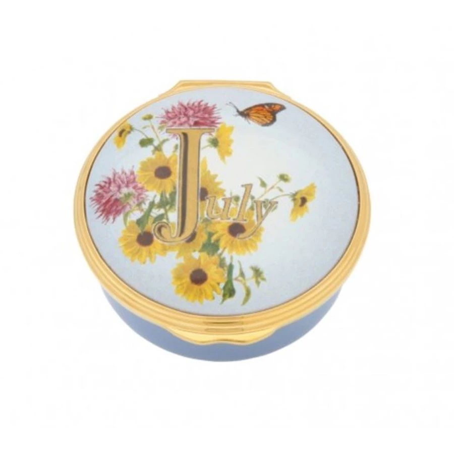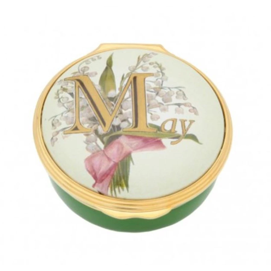 These twelve beautiful boxes depict each month of the calendar year. Each is a glorious gift to mark a special occasion, whether it be a Birthday or Christening. Crafted by skilled artisans, from start to finish in England, this enamel trinket box is finished by hand with 18k gold detailing.