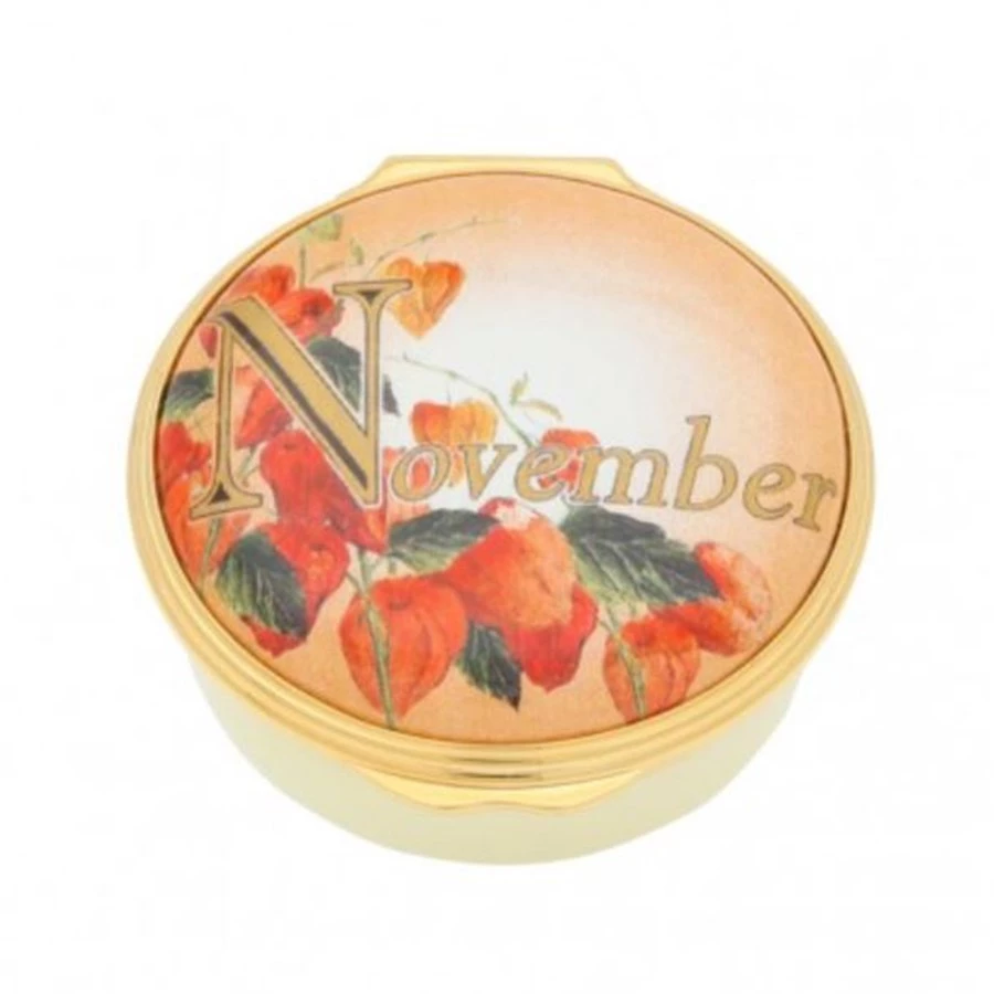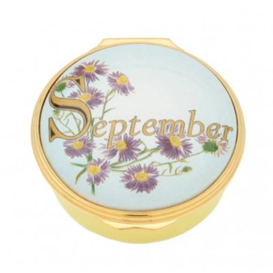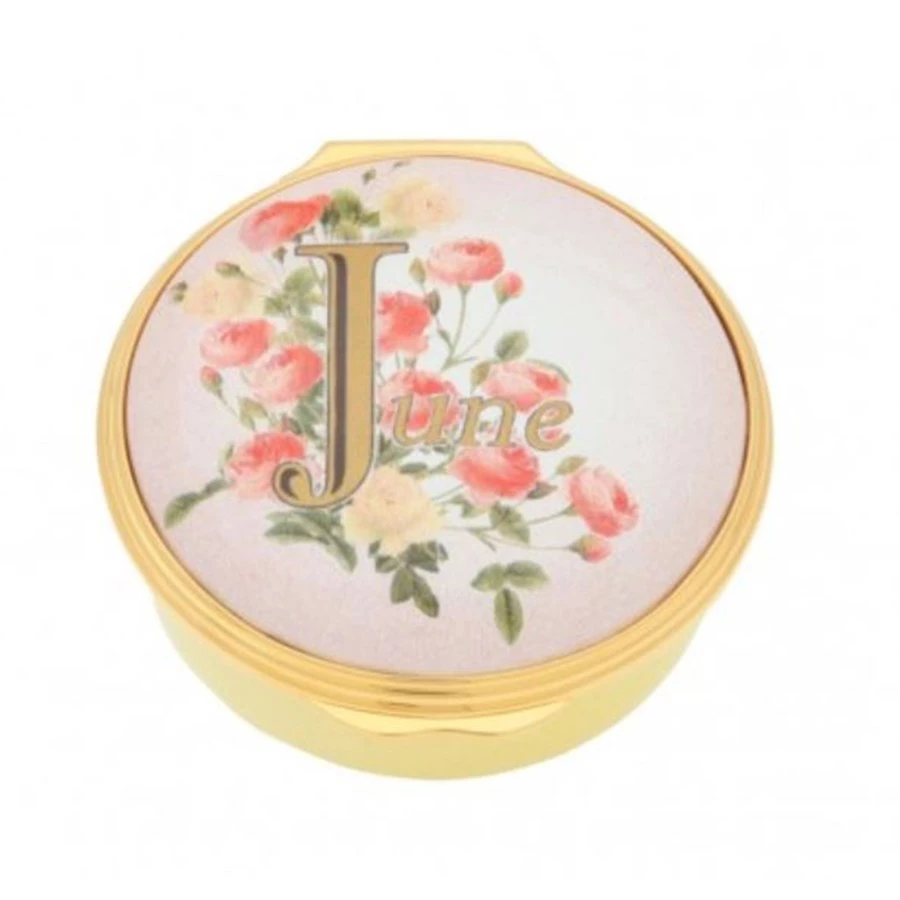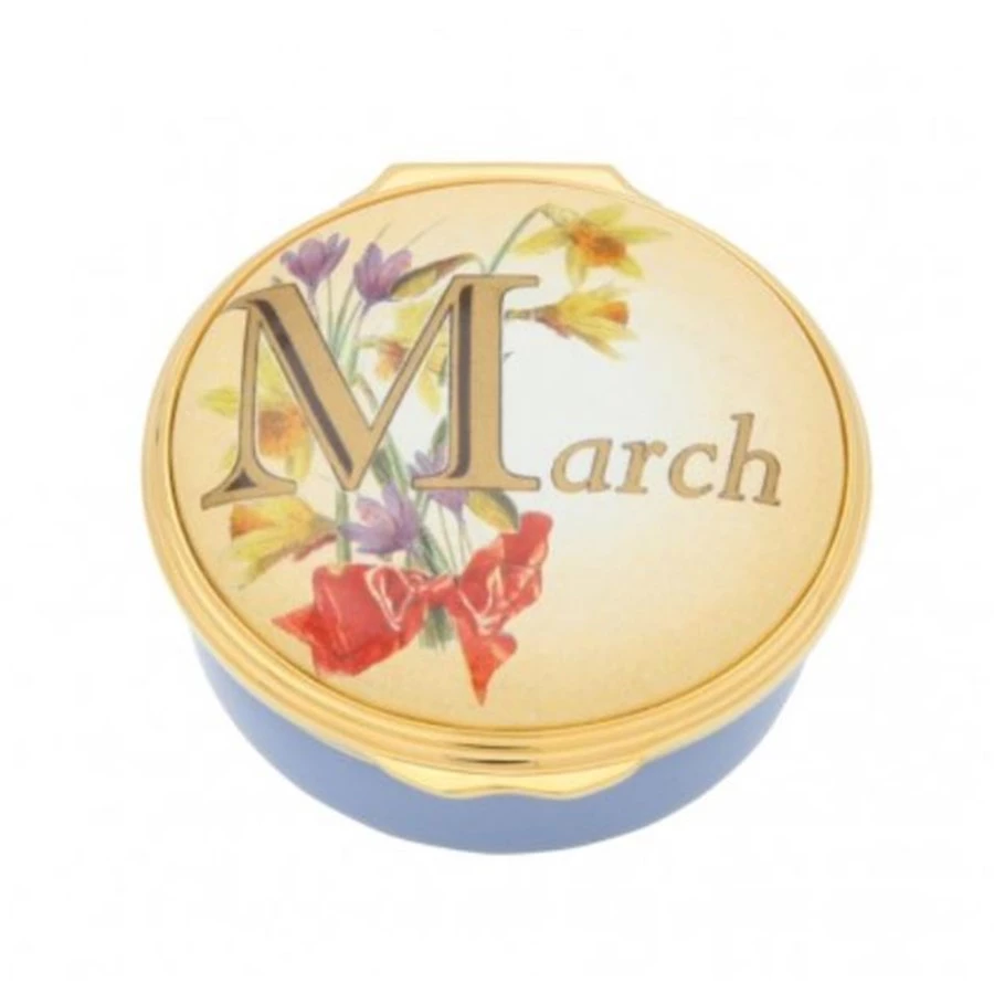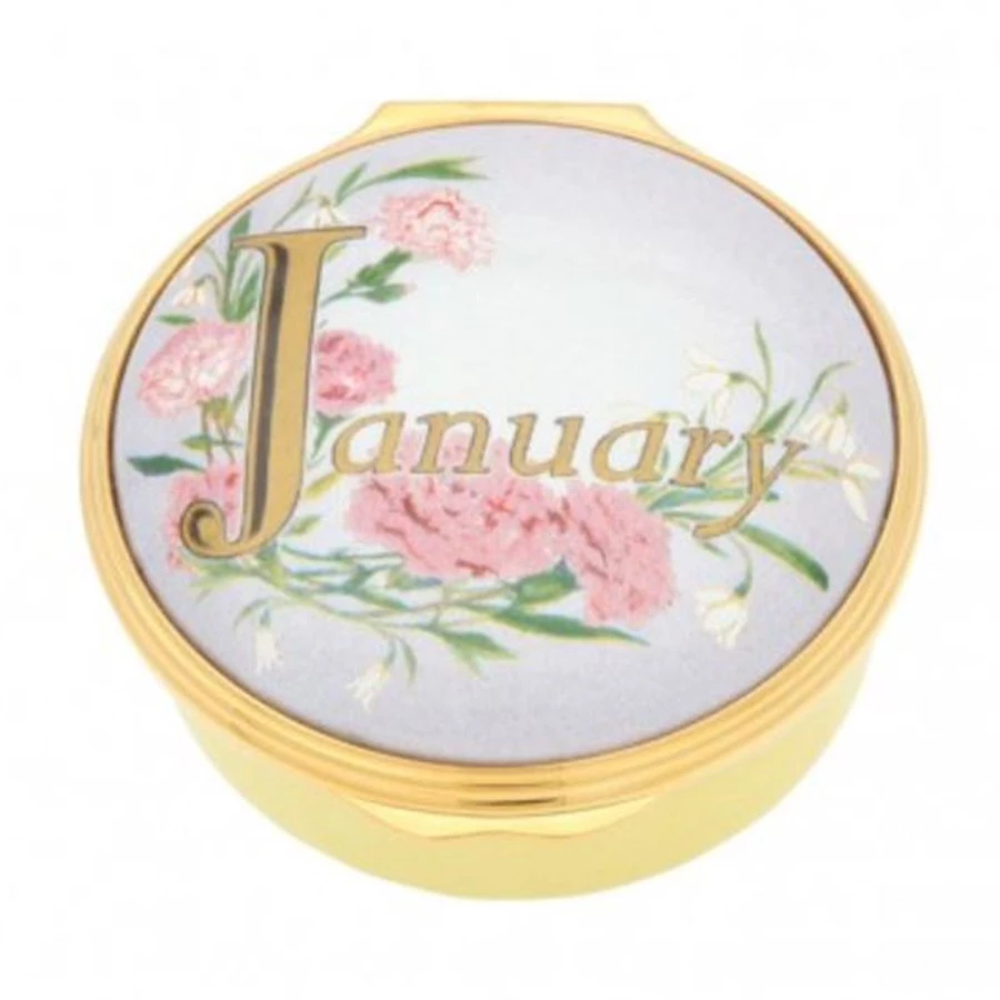 These twelve beautiful boxes depict each month of the calendar year. Each is a glorious gift to mark a special occasion, whether it be a Birthday or Christening. Crafted by skilled artisans, from start to finish in England, this enamel trinket box is finished by hand with 18k gold detailing.