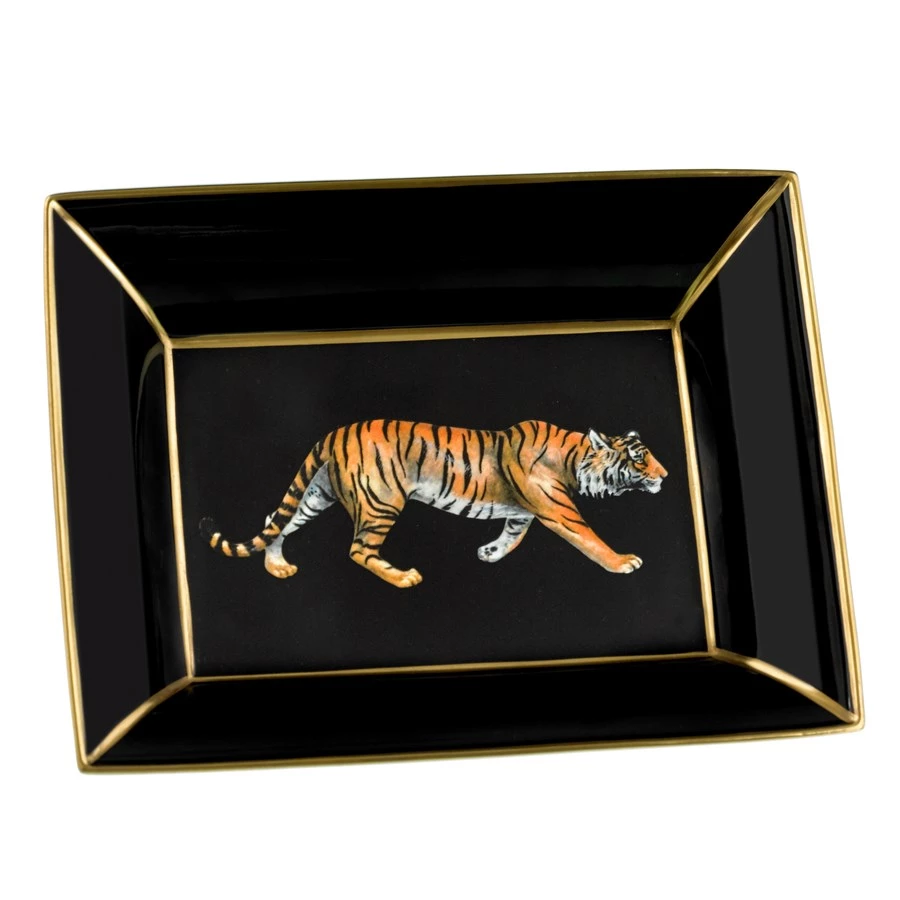 Beautiful black trinket tray with its elegant tiger design is part of Halcyon Days’ Magnificent Wildlife collection. The tiger roams proudly on a black fine bone china background. Handcrafted in the heart of England using skills that have been passed down through generations.