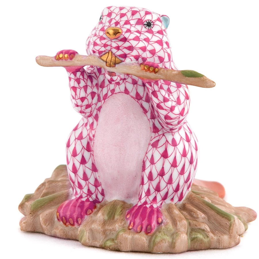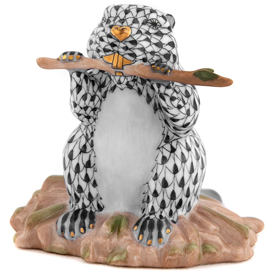 Natures very own engineers and landscapers, the humble beaver is able to transform huge areas of land by diverting small streams and waterways with its dam building ability. Handmade and handpainted porcelain from Hungary, with 24k gold accents.