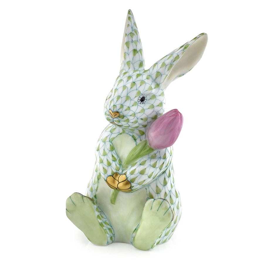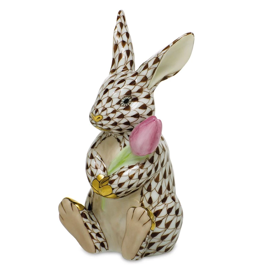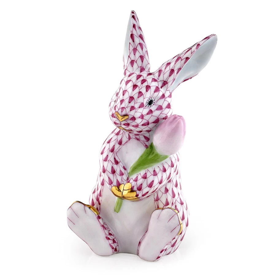 In 1874, a Herend artist picked up his tools to try to mimic a Chinese plate’s fish scale design and the illustrious fishnet pattern was born. Porcelain from Hungary, handmade and handpainted with 24k gold accents. Flower always pink.