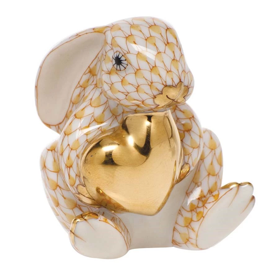Warm any heart with this adorable bunny from Herend. Handmade and handpainted porcelain from Hungary with 24K gold accents.