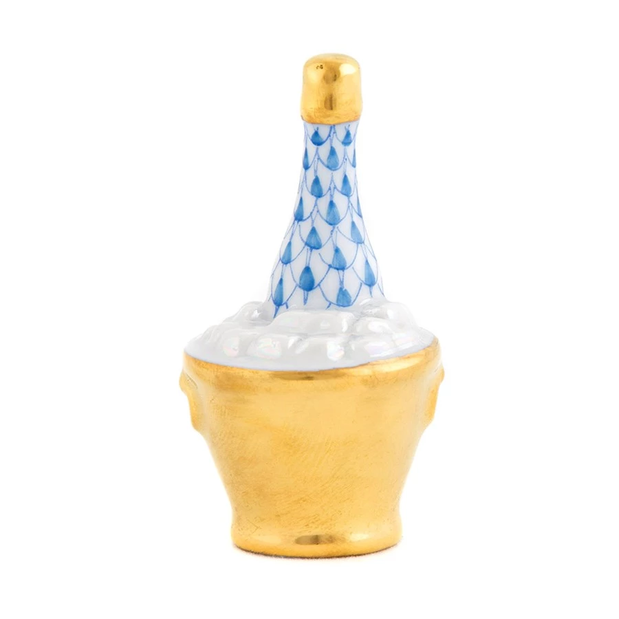 Include this charming Herend porcelain champagne bucket during moments of celebration & keep it as a memento forever! In 1874, a Herend artist picked up his tools to try to mimic a Chinese plate’s fish scale design, beginning the tradition of the illustrious fishnet pattern. Herend porcelain from Hungary is handmade and handpainted with 24k gold accents.
