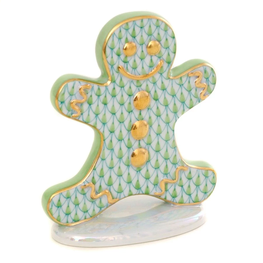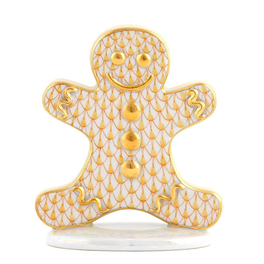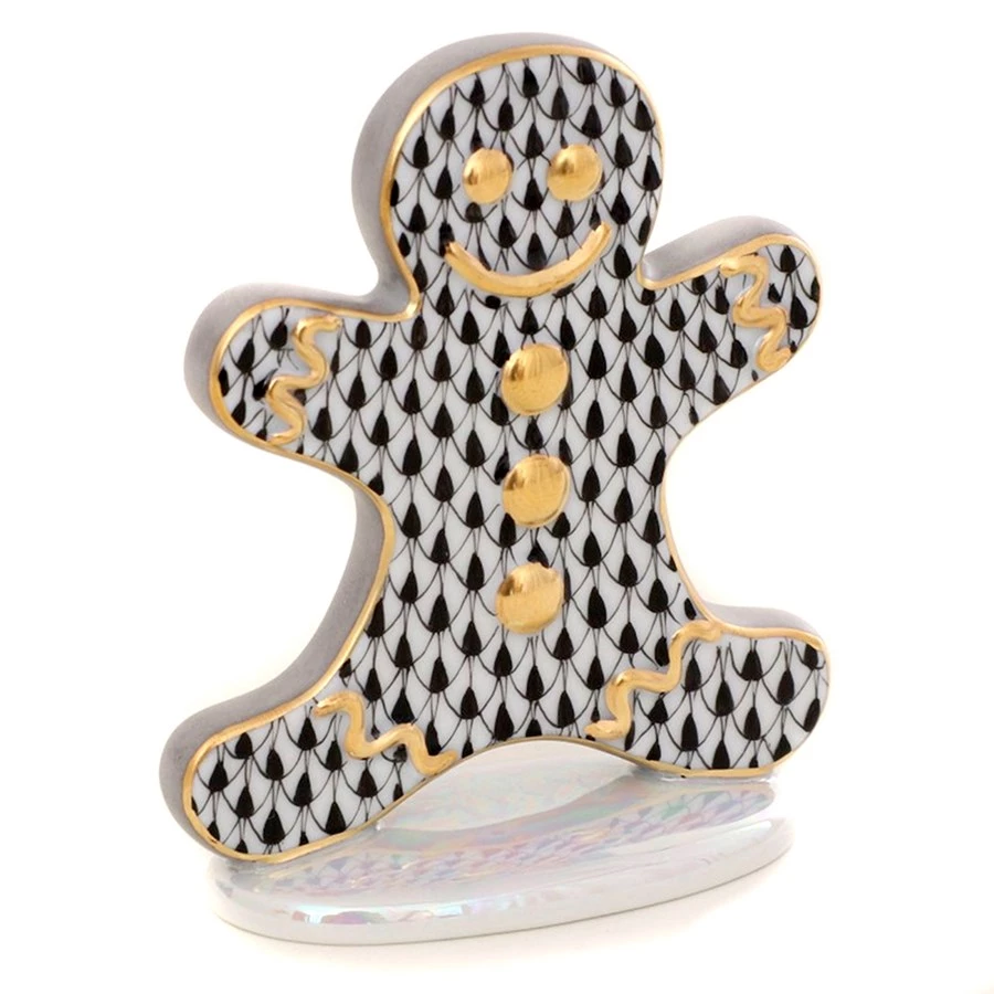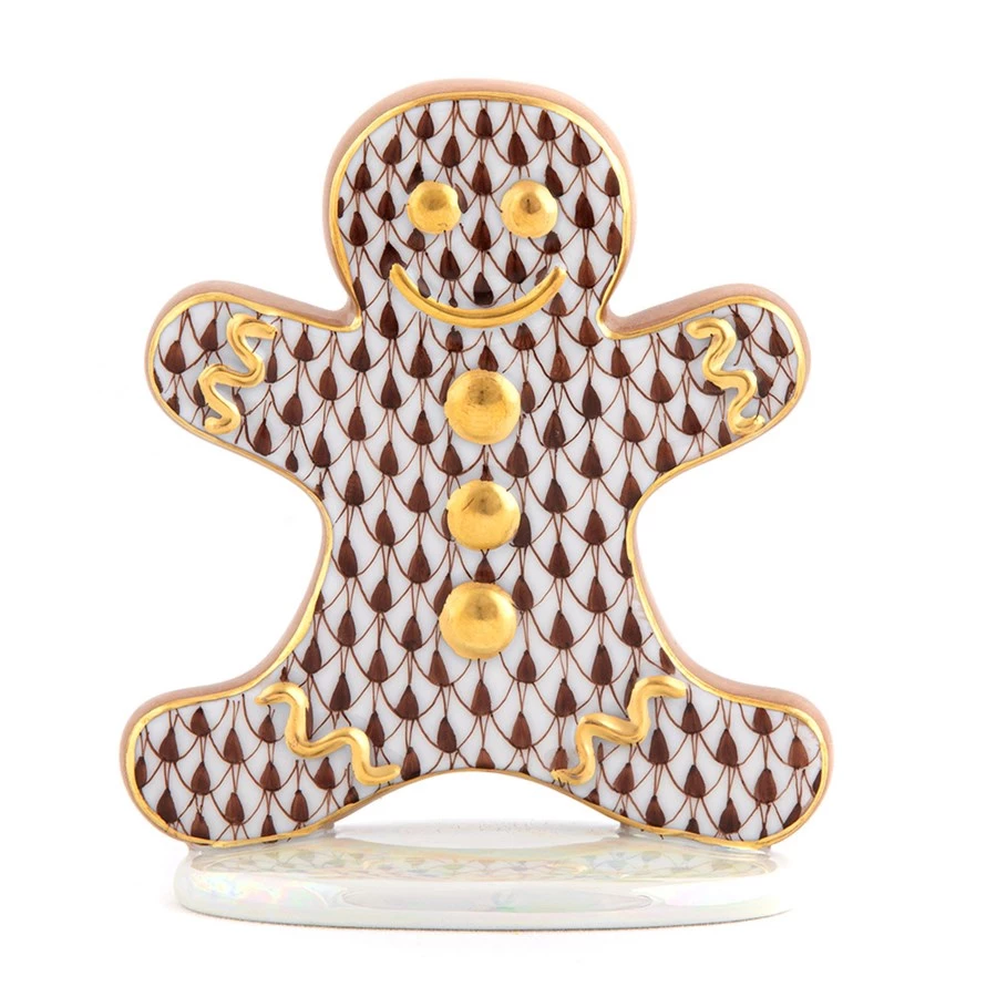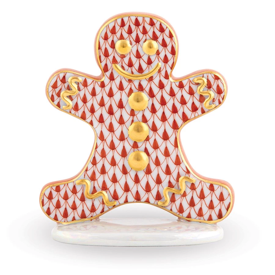 Get into the holiday spirit with the smiling gingerbread man, decorated on one side as a fabulously festive decoration. In 1874, a Herend artist picked up his tools to try to mimic a Chinese plate’s fish scale design, beginning the tradition of the illustrious fishnet pattern. Herend porcelain from Hungary is handmade and handpainted with 24k gold accents.