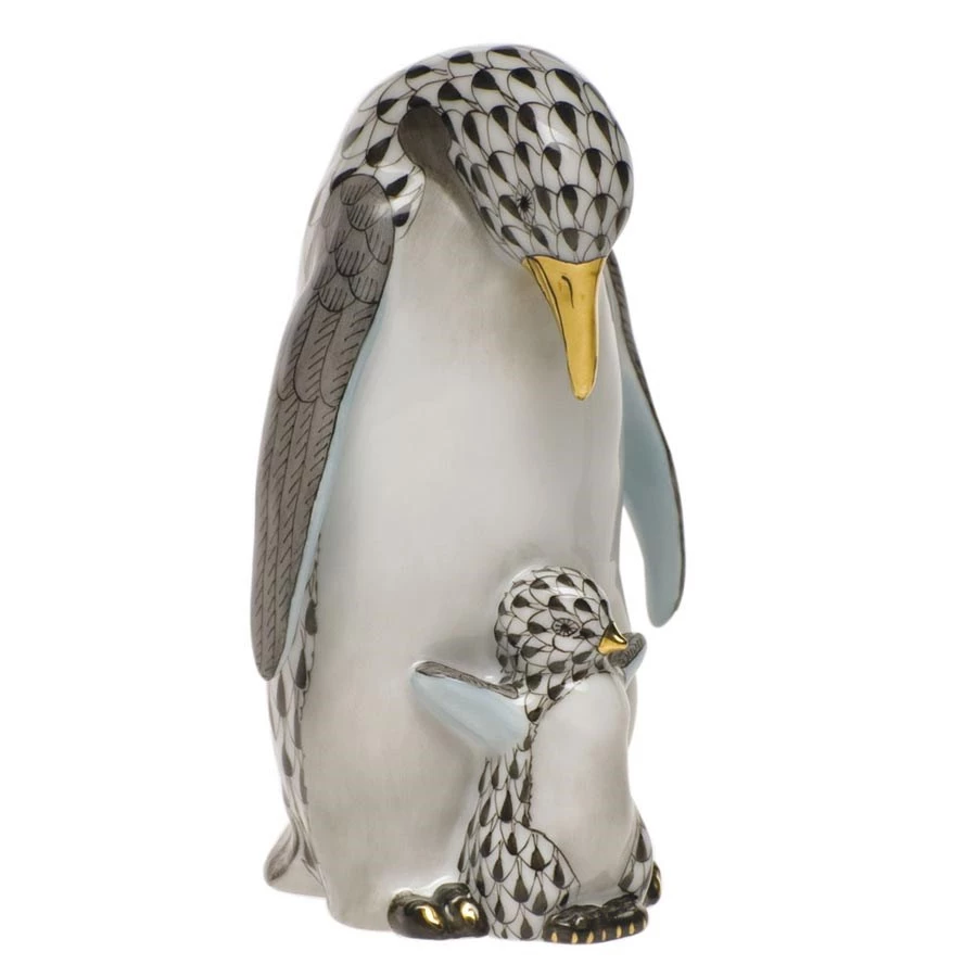 Herend Penguin And Baby Figurine