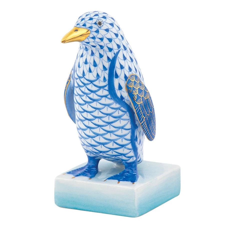Aways keep cool with the Herend Penguin standing on his favorite patch of ice floe. Handmade porcelain from Hungary, handpainted with 24k gold accents.