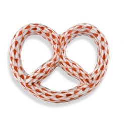 Celebrate a classic European treat with a beautiful Herend Pretzel. The illustrious fishnet design was created in 1874, when a Herend artist picked up his tools to try to mimic a Chinese plate’s fish scale. Porcelain from Hungary, handmade and handpainted with 24k gold accents.