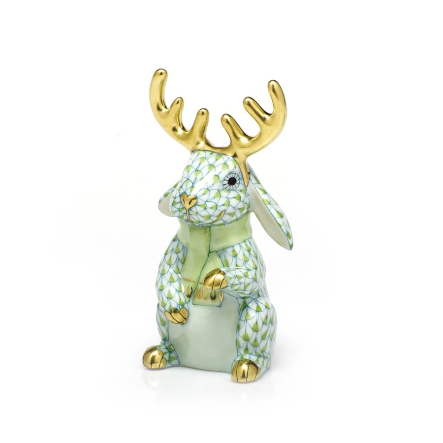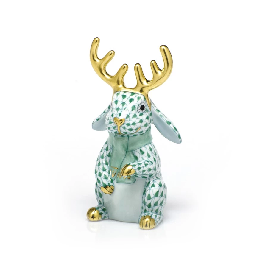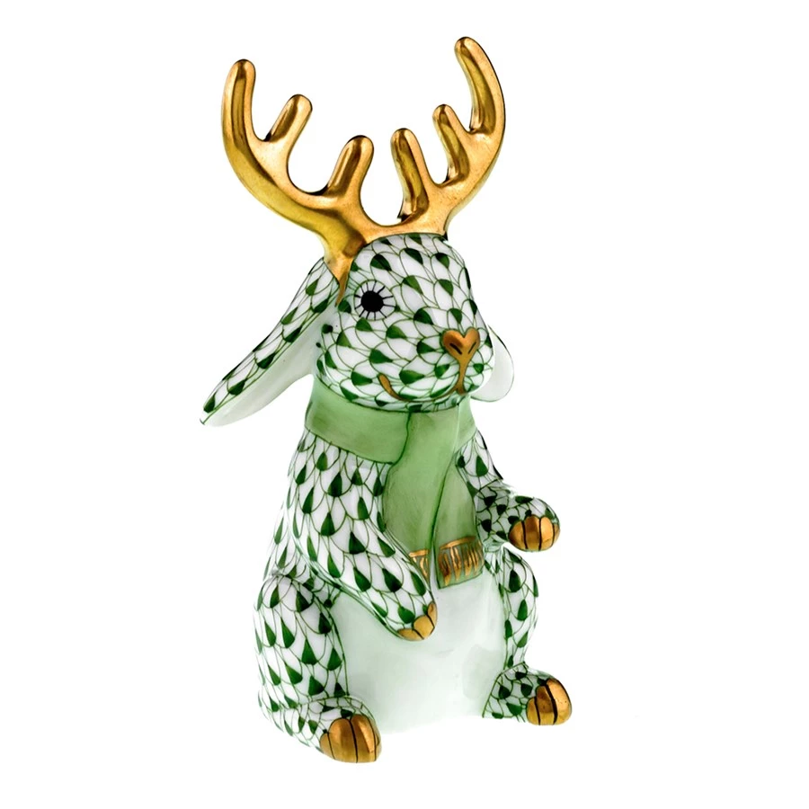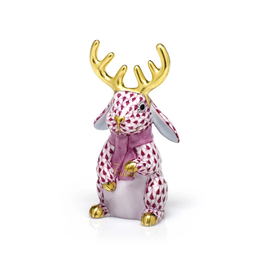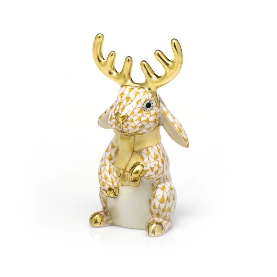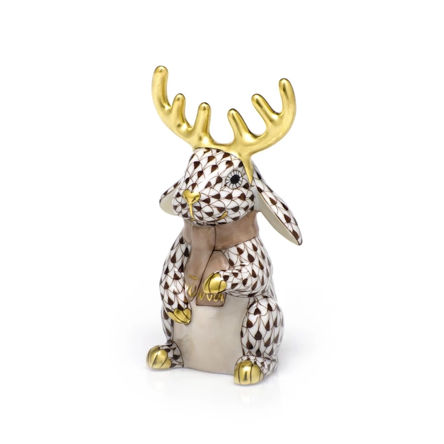 In 1874, a Herend artist picked up his tools to try to mimic a Chinese plate’s fish scale design and the illustrious fishnet pattern was born. Porcelain from Hungary, handmade and handpainted with 24k gold accents. The scarf is always washed the same color as fishnet and the antlers are always gold.