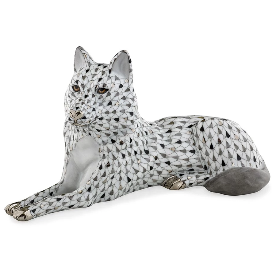 A full moon and a crisp winter landscape seem to be reflected back in the dramatic black, platinum and gray fishnet tones of this new addition to the Reserve Collection. On a long wintry night when stories are often told, the wolf’s proud stance and the intense depth of his eyes seem to speak to conquests of old and victories yet to come. Limited Edition of 175