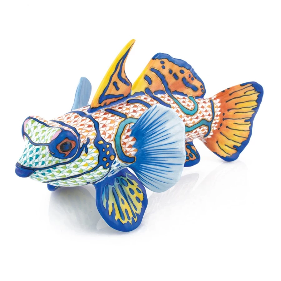 Named after the colorful robes of Imperial Chinese officers (mandarins), these fish are surprisingly shy considering their appearance. But in nature colorful rarely means life-of-the-party and these fish use their kaleidoscopic brilliance to alert others to their less than appetizing taste (they are covered in a smelly mucus that protects them from disease but also makes them taste bad). A fish seemingly designed for the painter’s brush, the artists at Herend have used multiple techniques to beautifully immortalize this exotic reef-dweller. Limited edition of 150.