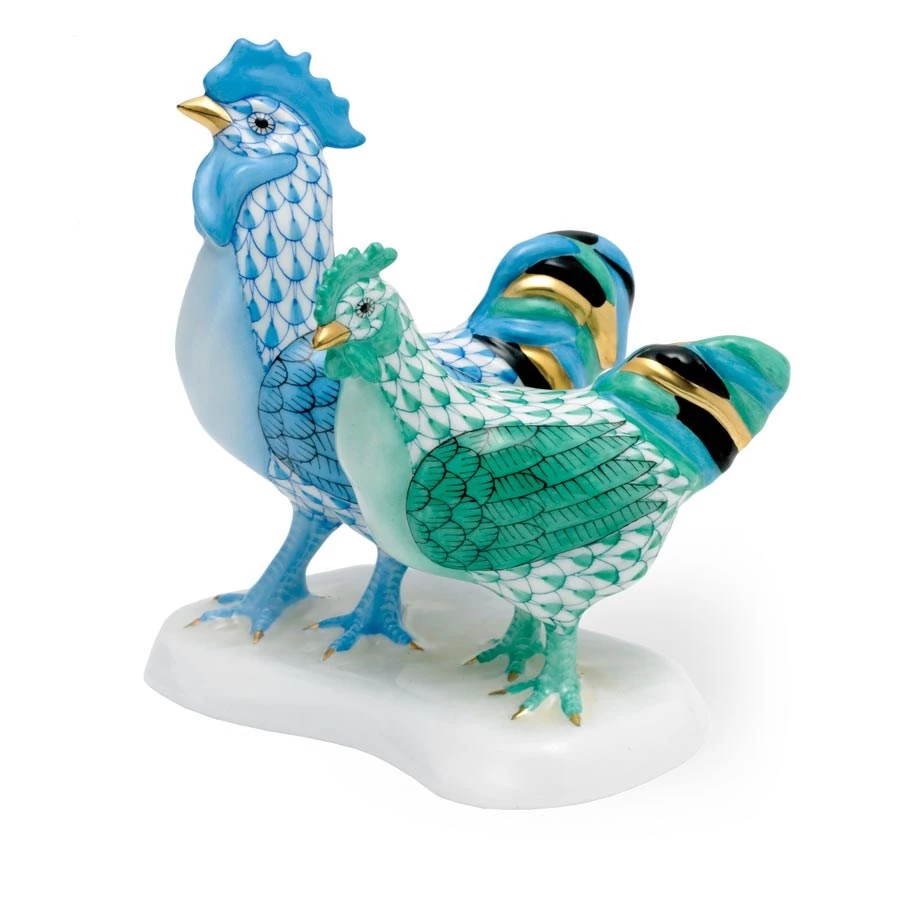 | Style | Herend Blue Rooster with Green Hen, Black Rooster with Raspberry Hen, Herend Butterscotch Rooster with Butterscotch Hen, Herend Black Rooster with Chocolate Hen, Herend Blue Rooster with Raspberry Hen, Herend Rust Rooster with Blue Hen |