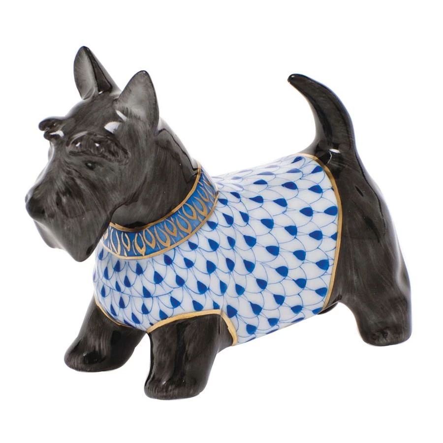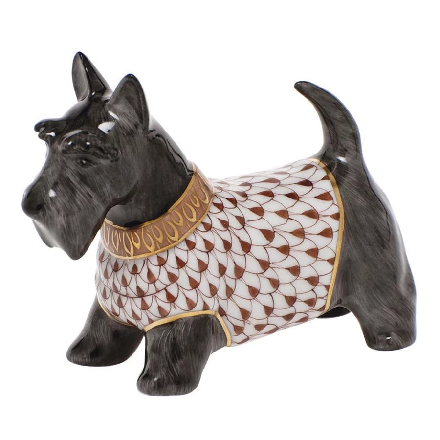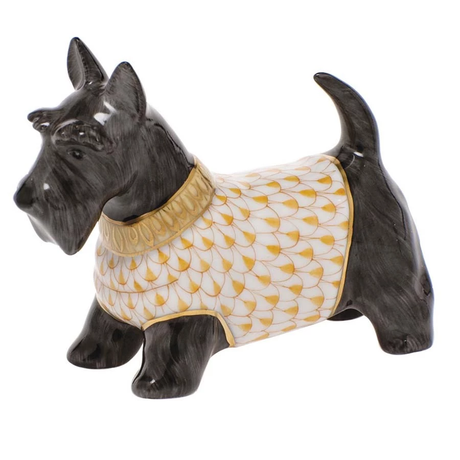 Invite McDuff, the adorable Scottish Terrier, into your home and he will bring joy to your day. Herend porcelain from Hungary, handmade and handpainted with 24K gold accents.