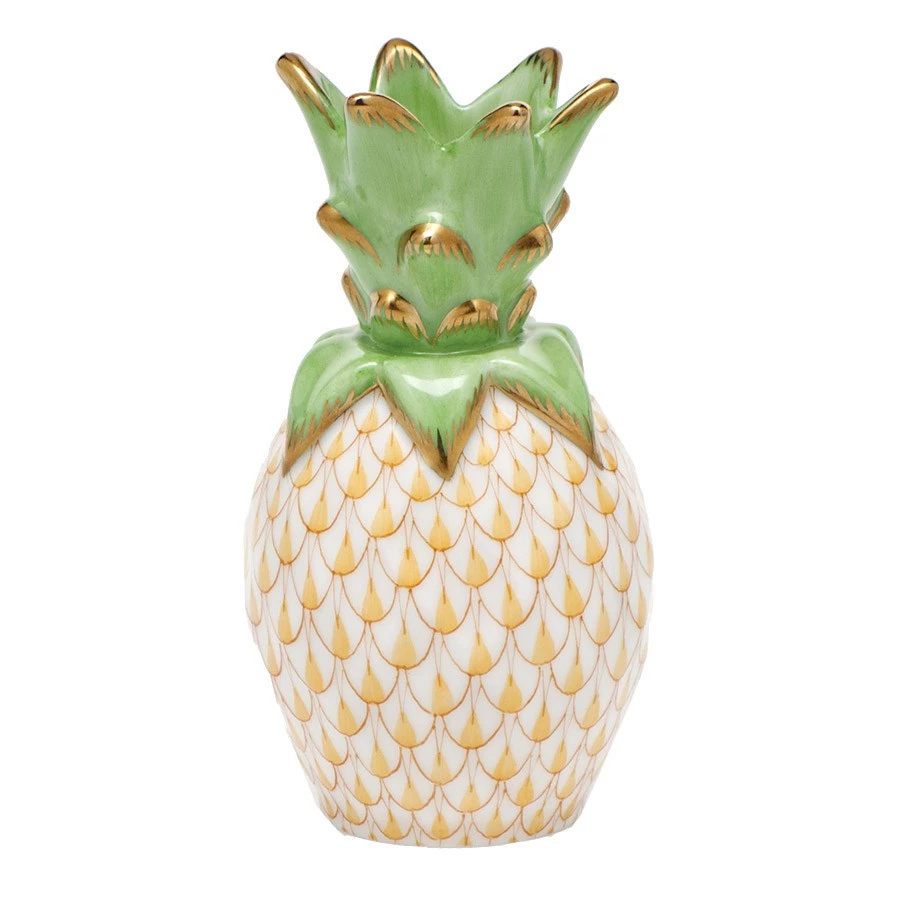 Originally introduced in 2013, the Small Pineapple from Herend takes the global sign for hospitality and transforms it into an elegant piece of porcelain art. Handmade and handpainted porcelain from Hungary with 24K gold accents.