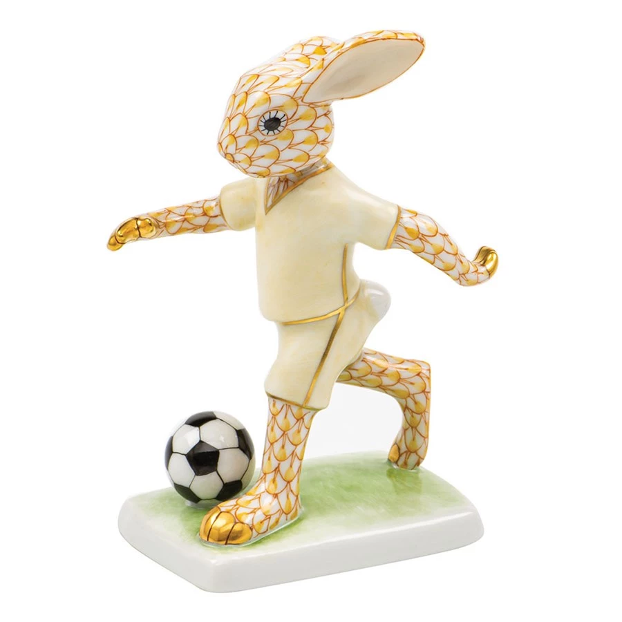 Celebrate the beautiful game with the Soccer Bunny from Herend. Perfectly giftable and always playing for your team. Handmade porcelain from Herend of Hungary, handpainted with 24k gold accents.