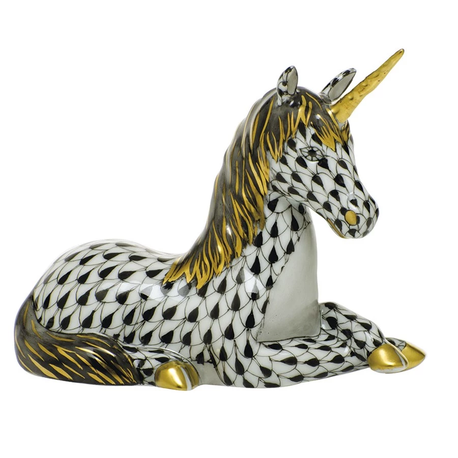 Herend porcelain unicorns from Hungary, handmade and handpainted with 24K gold accents.