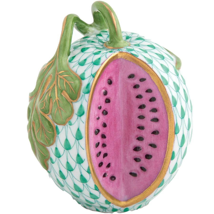 Loved by many, essential for some, introducing Herend’s take on the watermelon with its fish net green exterior cut open to reveal the sweet pink flesh within. Featuring the iconic fish scale design, this watermelon addition is perfect for any seasonal collection. Porcelain from Hungary, handmade and handpainted with 24k gold accents.