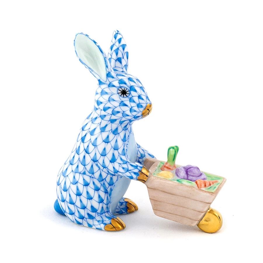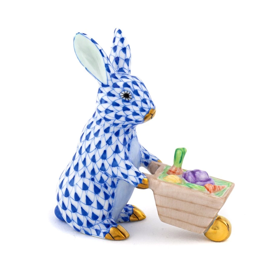 Celebrate your love for bunnies with the adorable Herend bunny with a wheelbarrow. The perfect gift or the perfect addition to a Herend collection. Handmade and handpainted with 24K gold accents in Hungary.