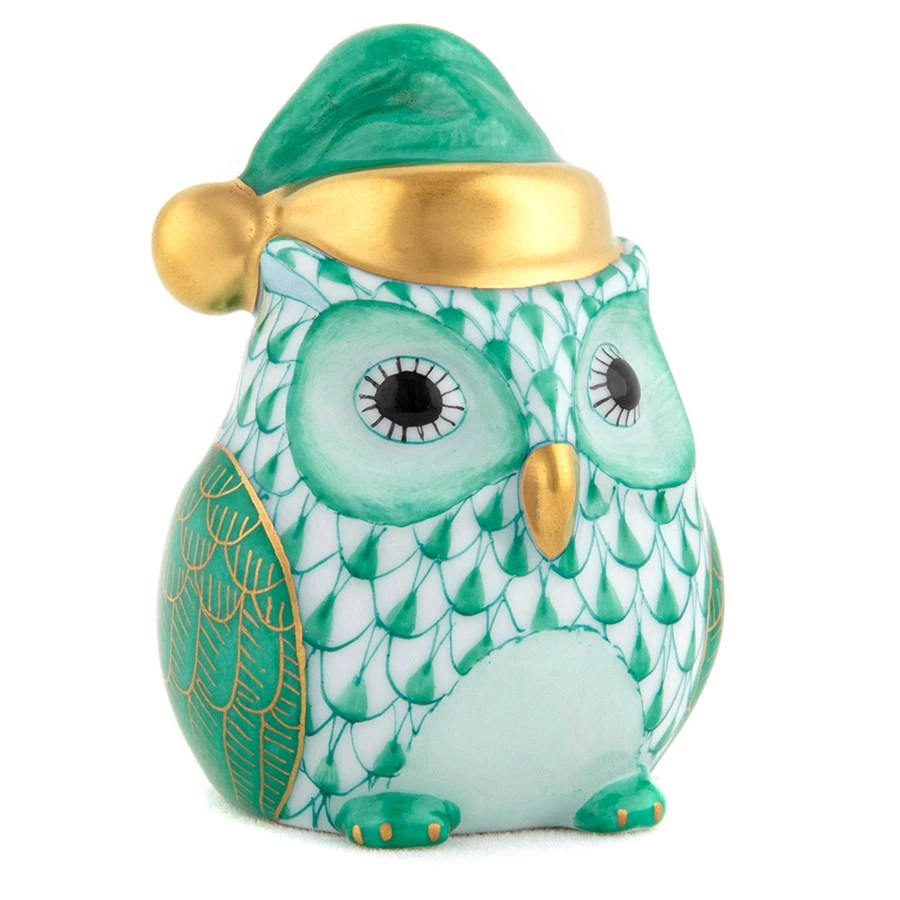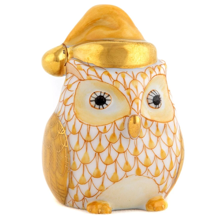 A whimsical take on the wise owl by the artists at Herend. Each cozy owl is topped with a nightcap featuring the illustrious Herend fish net pattern. Handmade and handpainted porcelain from Hungary, with 24k gold accents.