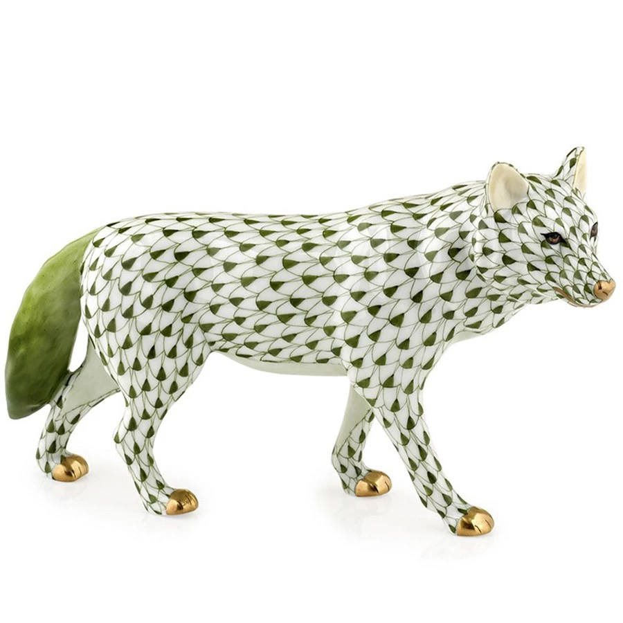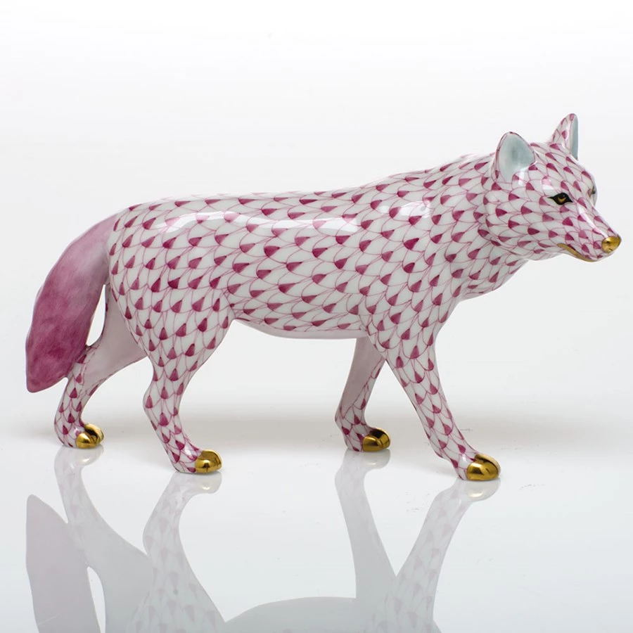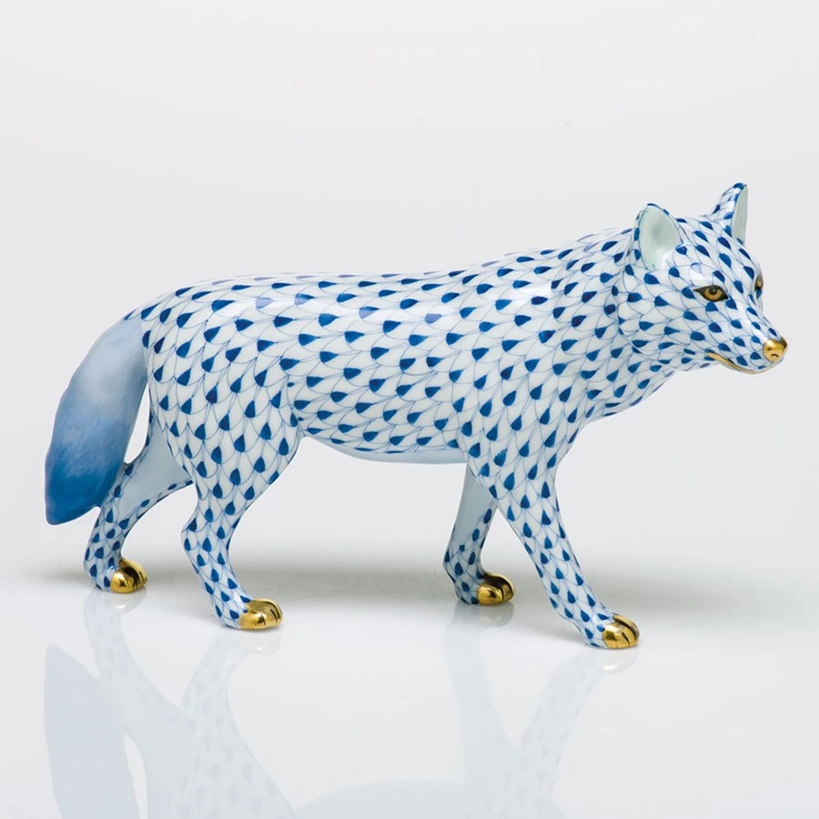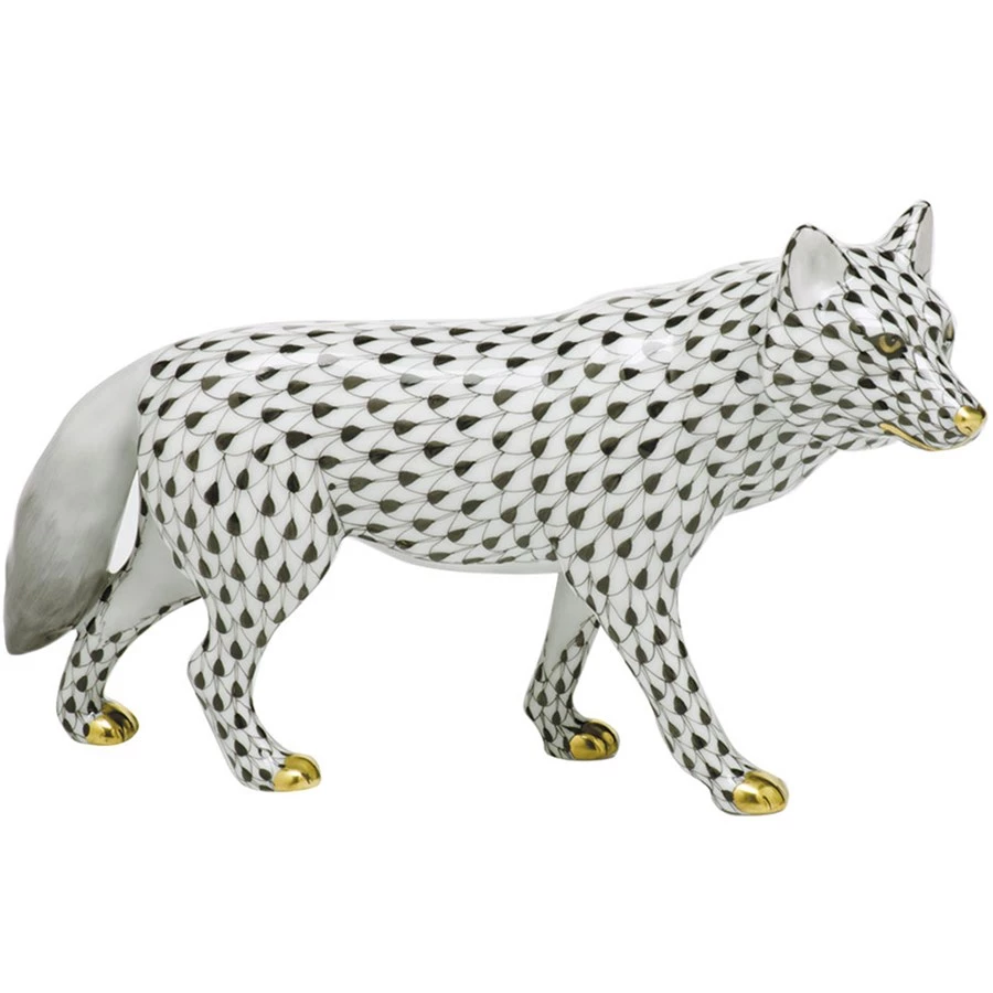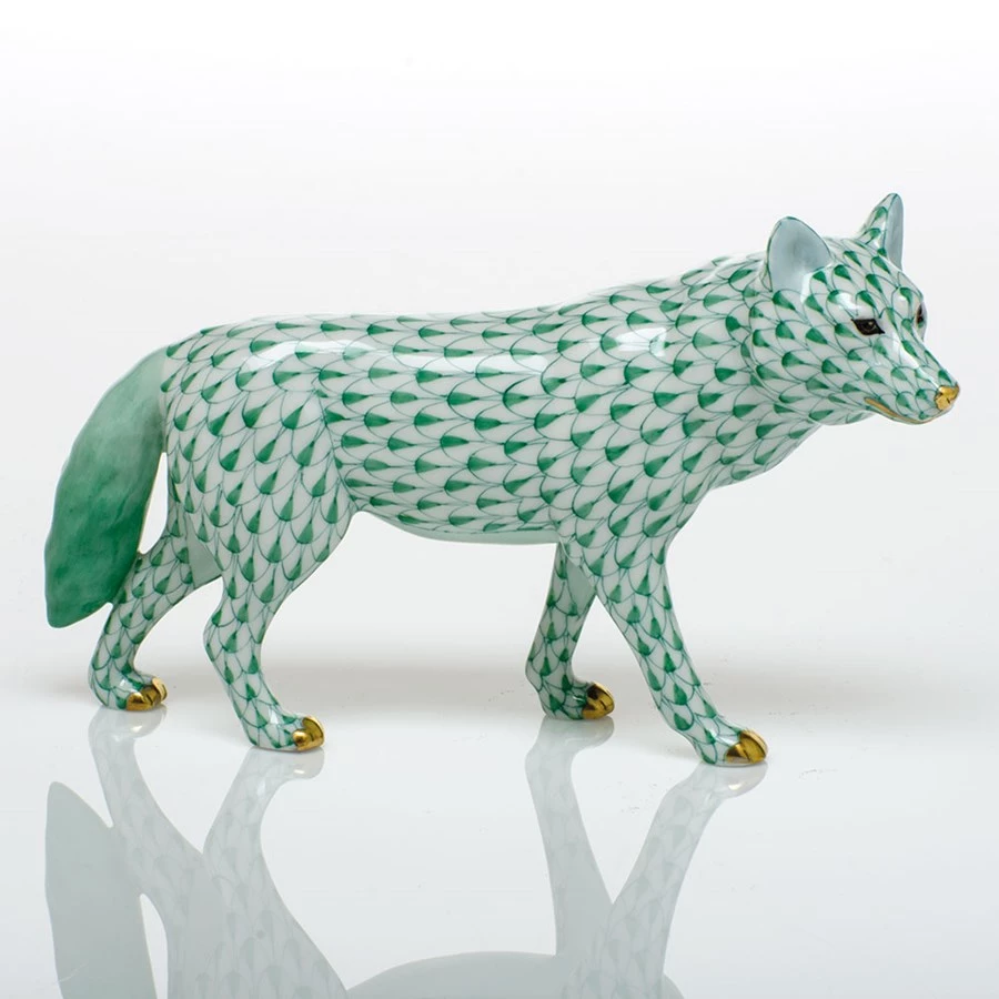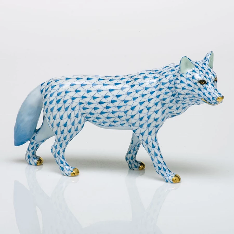 Cousin to man’s best friend, Herend artists capture the proud wolf in perfect porcelain featuring the exclusive Herend colors in their famous fish net pattern. Handmade and handpainted porcelain from Hungary, with 24k gold accents.