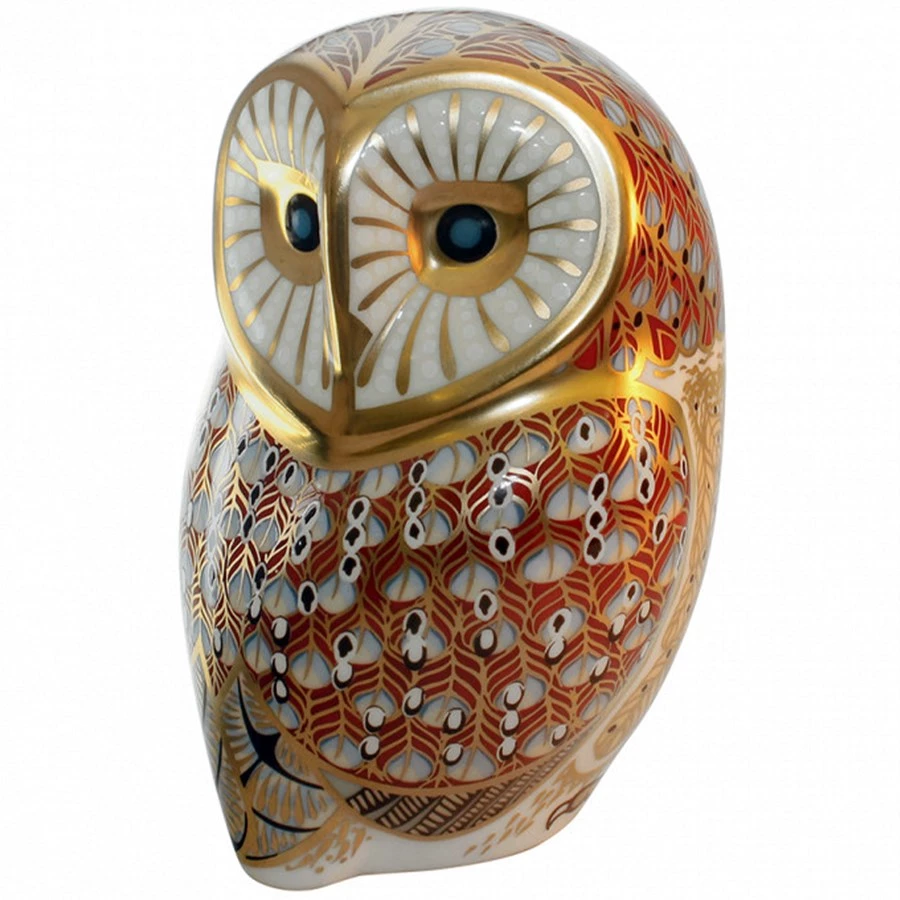 The rust, cobalt blue and gold colors so prized in the Royal Crown Derby “Imari” patterns appear here in porcelain figurines from England. Each has a stopper so it can be filled with sand for use as a paperweight.