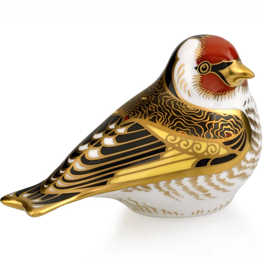 From Royal Crown Derby, a master manufactory since 1750, comes the exquisite Goldfinch. Handcrafted of bone china, each bird is handpainted with its distinctive red and white face, and accented with 22k gold. Capturing the essence of the sociable bird, with its yellow wings, the Goldfinch would make a delightful addition to your collection or as a gift to a bird lover. Each has a stopper so it can be filled with sand to serve as a paperweight. Handmade in England.