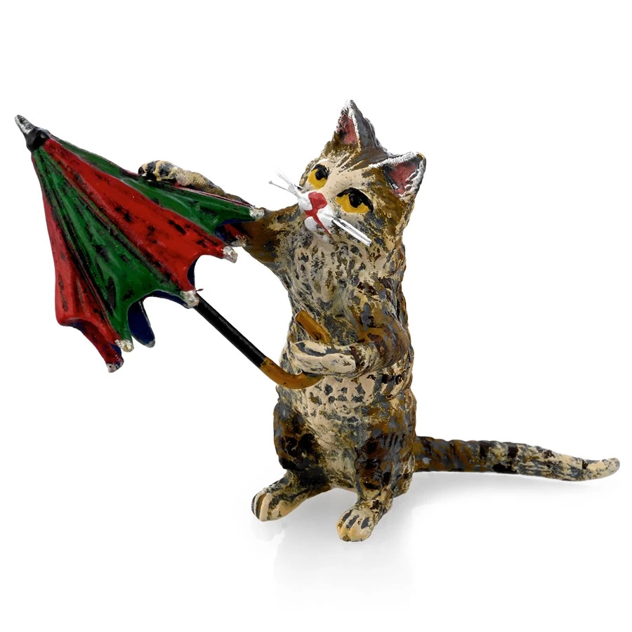 Scully & Scully Austrian Bronze Cat With Colorful Umbrella