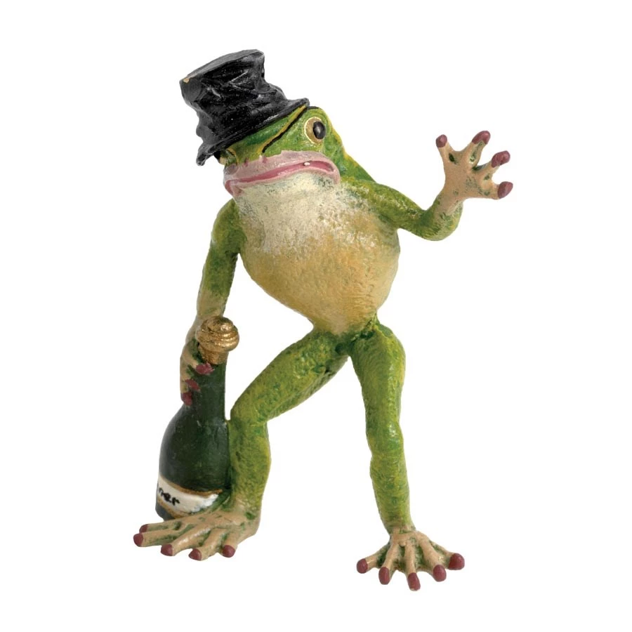 Scully & Scully Austrian Bronze Frog With Top Hat & Bottle Figurine