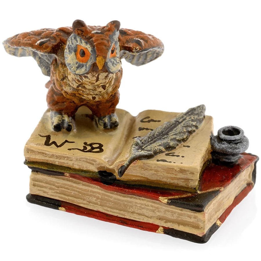 Scully & Scully Austrian Bronze Owl On Books With Inkpot Figurine