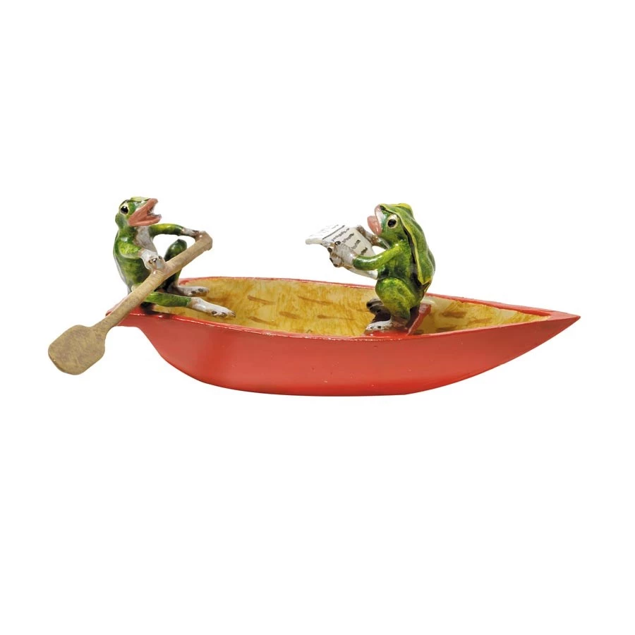 Scully & Scully Austrian Bronze Two Frogs In Red Rowboat Figurine