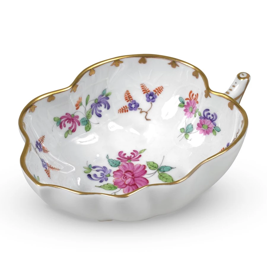 Gorgeous porcelain bowls handmade and handpainted in Dresden, Germany. Features gold accents and colorful floral designs in the center.