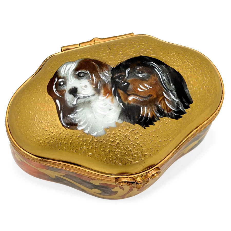 Handmade and handpainted in France with brass fittings and a decorative fastener in the tradition of the snuff boxes so popular among 18th century French society. Dog collar is painted on the inside.
