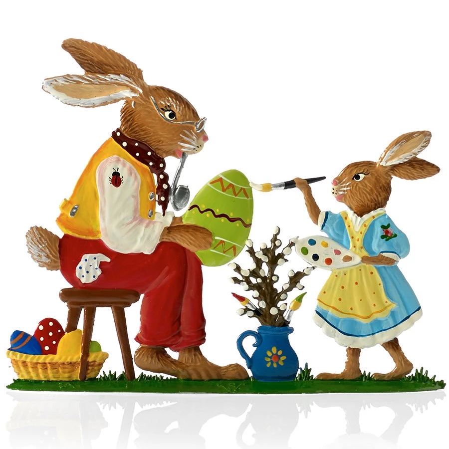 Flat figurines entirely handmade in Germany for nearly eighty years, handcast in slate engraved molds, then handpainted on both sides so it can be positioned either way. Colors may vary.