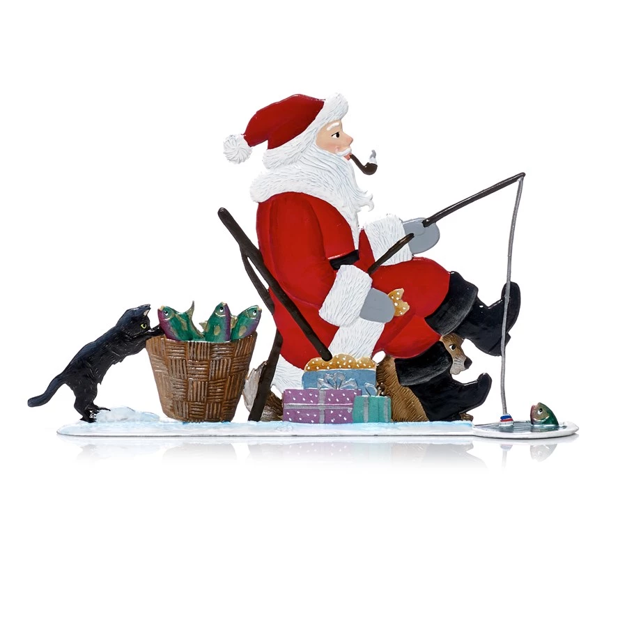 Scully & Scully Pewter Standing Art Ice Fishing Santa