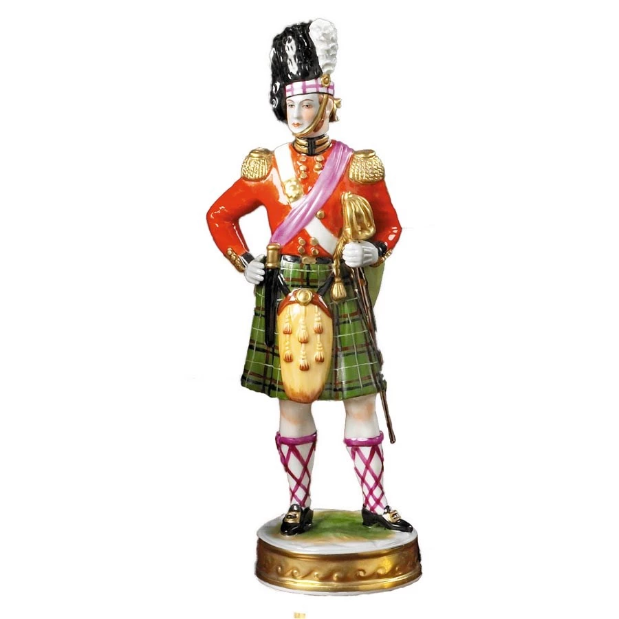 Handmade, handpainted British soldier figurines from Germany are based on decorative themes that were particularly popular in the mid-19th century. They range from 8½” to 9¼”h
